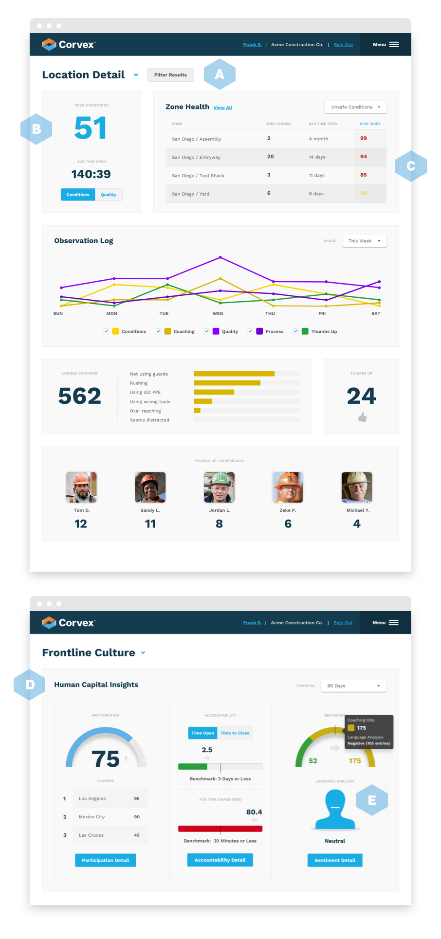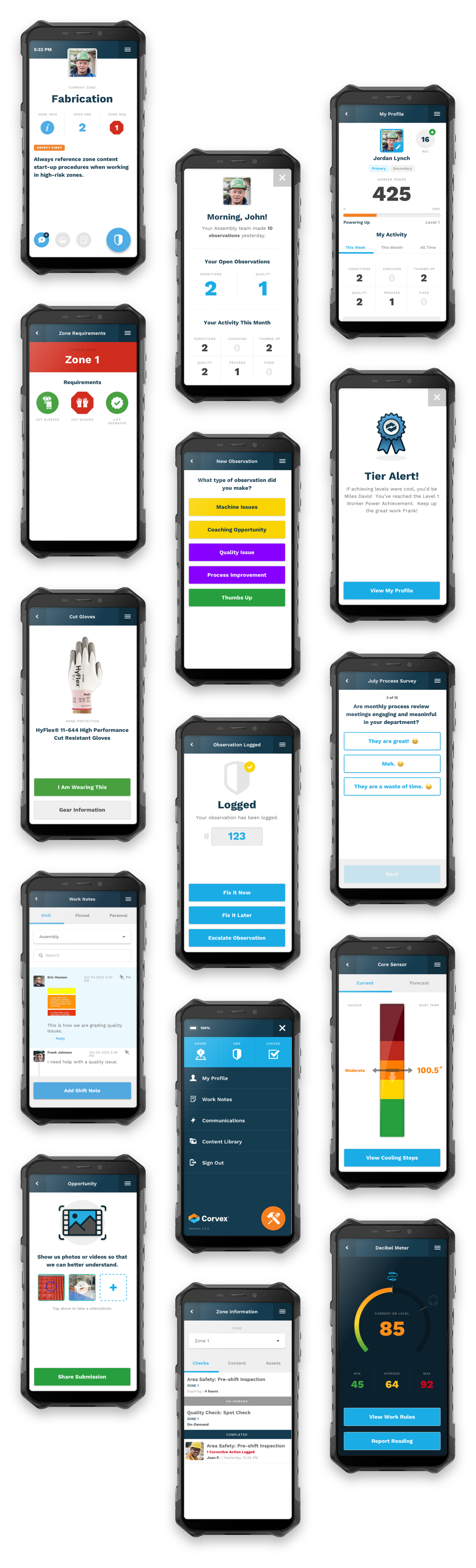 Corvex Connected Worker is an enterprise IoT SaaS platform for operational excellence, facilitating connectivity and activity management within dynamic environments through AI and machine learning. It includes a web application, mobile application, and diverse IoT hardware components used by tens of thousands of frontline workers everyday.