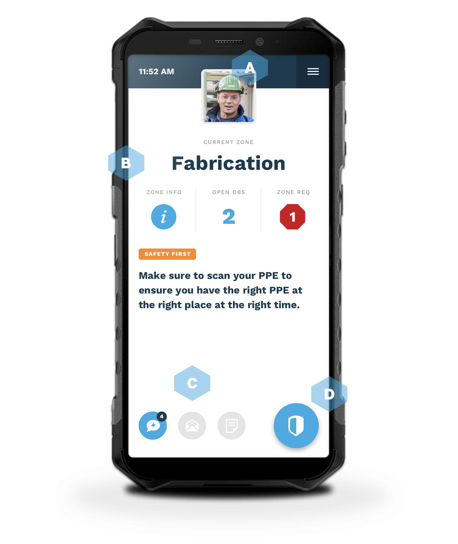 The platform gave workers real-time, contextual information based on their physical location within a work area that they could quickly access relevant things like required safety equipment (PPE), open hazards, rich training/process content, etc.