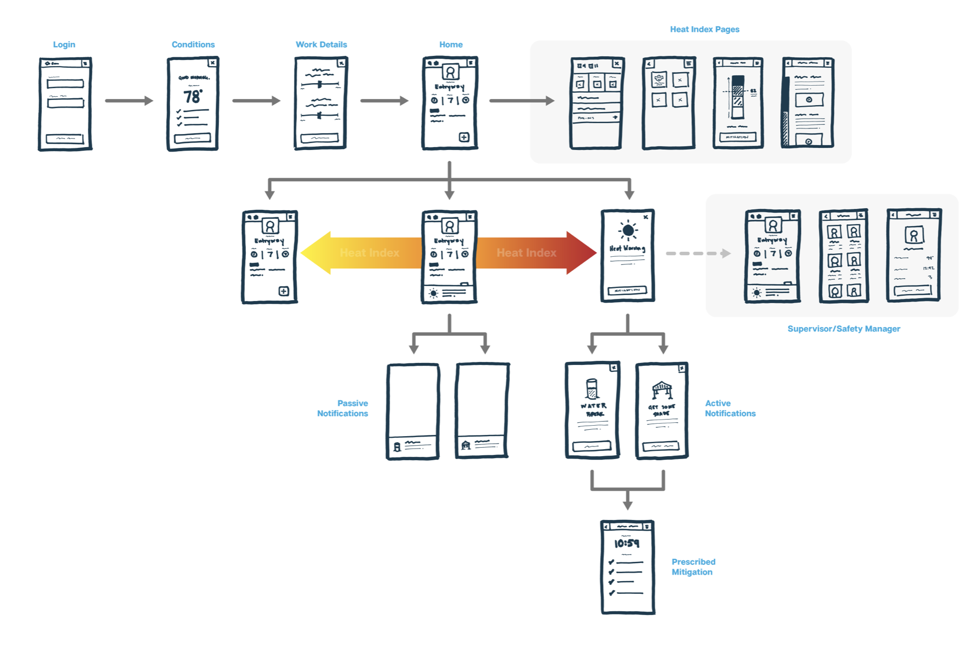 Combining rough sketches with userflows to communicate initial ideas/functionality.