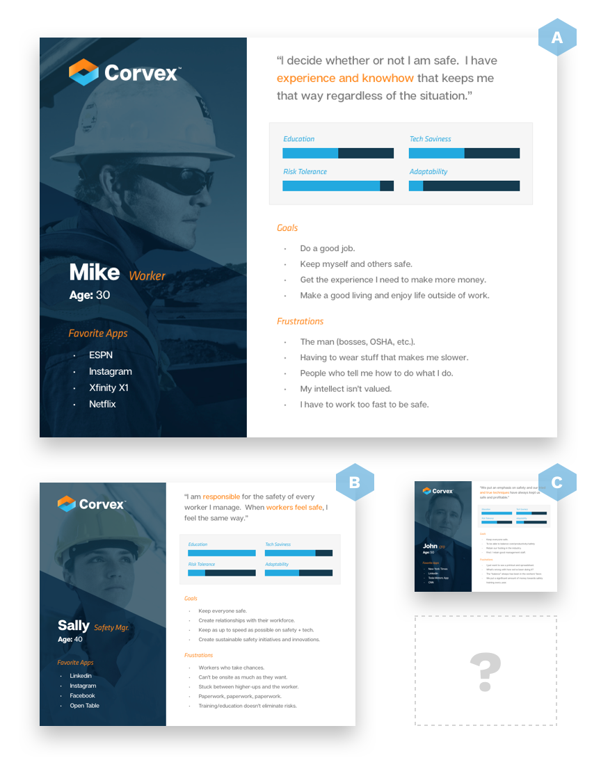 Personas played a vital role in identifying key stakeholders and uncovering consistent "personality traits" that were instrumental in understanding the landscape.